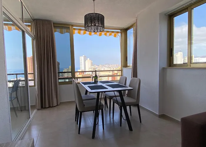 Overlooking the pool, the 1-room Mariscal 1 Sea View Apartment Benidorm is about 15 minutes' walk from the Placa del Castell in Benidorm. At this 63 m² apartment guests can lounge by an outdoor swimming pool or visit the Benidorm nightlife, which is located only 650 metres away.